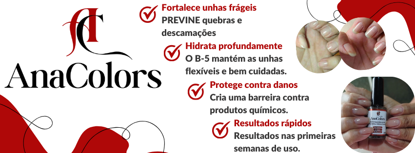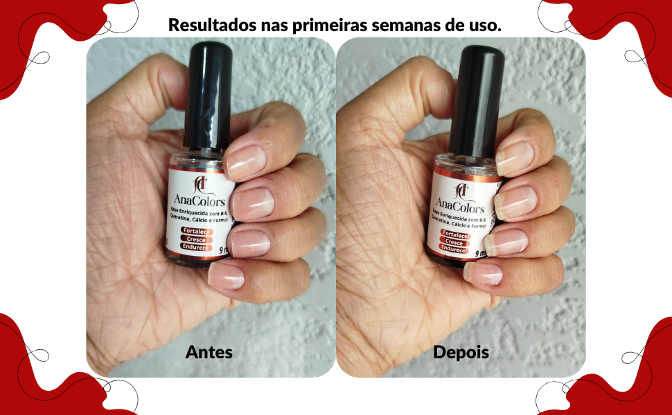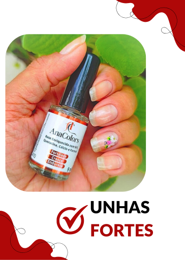 Com a Base Fortalecedora AnaColors, suas unhas não apenas ficarão mais fortes, mas também radiantes e saudáveis. Você verá resultados visíveis já nas primeiras semanas de uso!